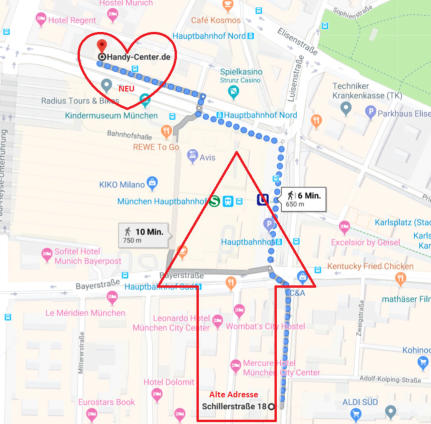 Geschichte Neueröffnung 23.11.2018 Liebe Kunden endlich ist das offiziell, nach langen Suchen haben wir am Hauptbahnhof unser neuen Traum Ladengeschäft gefunden.  Da viele Kunden sich verlaufen haben.  Wir haben den Wunsch zu herzen genommen und den Wunsch  	1.	Leicht zu finden.  	2.	Central für alle Kunden leicht erreichbar Am Hauptbahnhof          U-Bahn, S-Bahn, Tram, Bus  	3.	Mit Park Möglichkeiten sehr groß direkt vor unseren laden Sie Bilder. 	4.	Von unserem alten Büro zu fuß nur 6 Min entfernt.